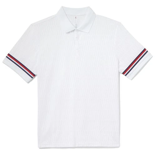 Never go out of style in the classic cuts and crisp colors of the Fila Essentials Heritage Collection. The Fila Essentials H jacquard polo features a color contrast collar, three-button placket, and striped accents on the sleeves. Made with moisture-wicking, anti-odor fabric.