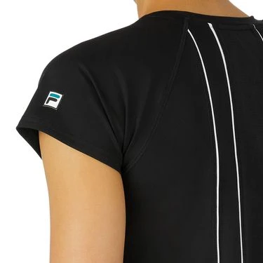 Gear up for the French Open in the cool prints of the Fila Women’s La Finale Spring 2023 Collection. The La Finale Short Sleeve Crew features a recycled ace jersey material, mesh panel and piping detail, and an F-box patch logo. Made with moisture-wicking, anti-odor 50 UV fabric.
